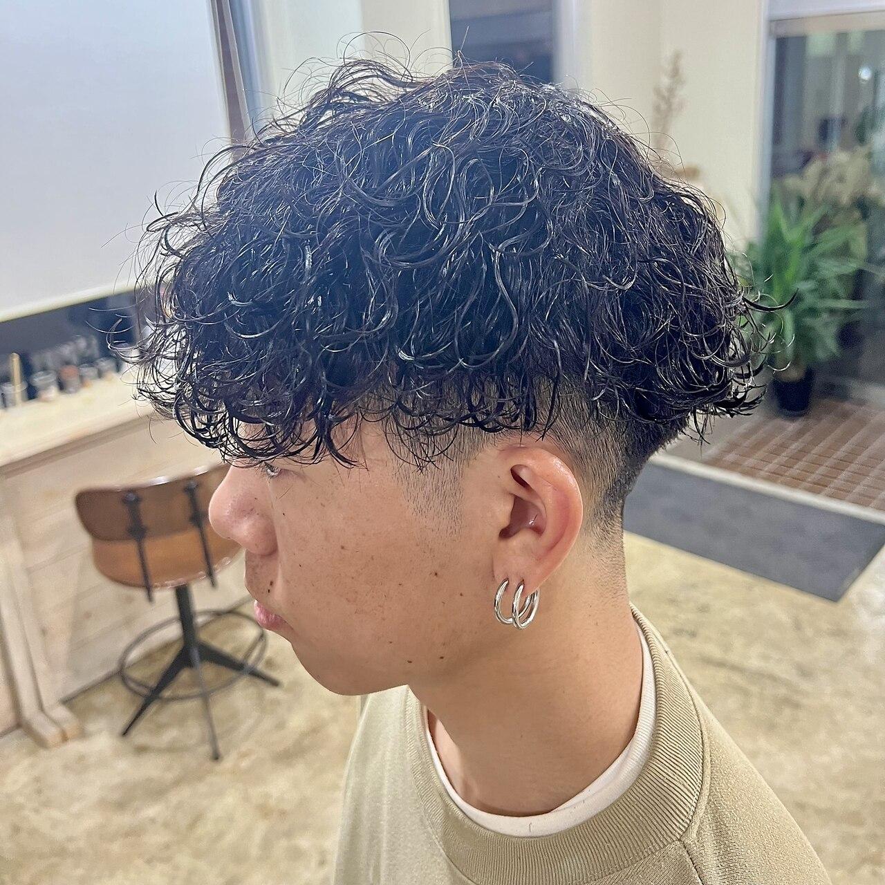 メンズカット+波巻きパーマ