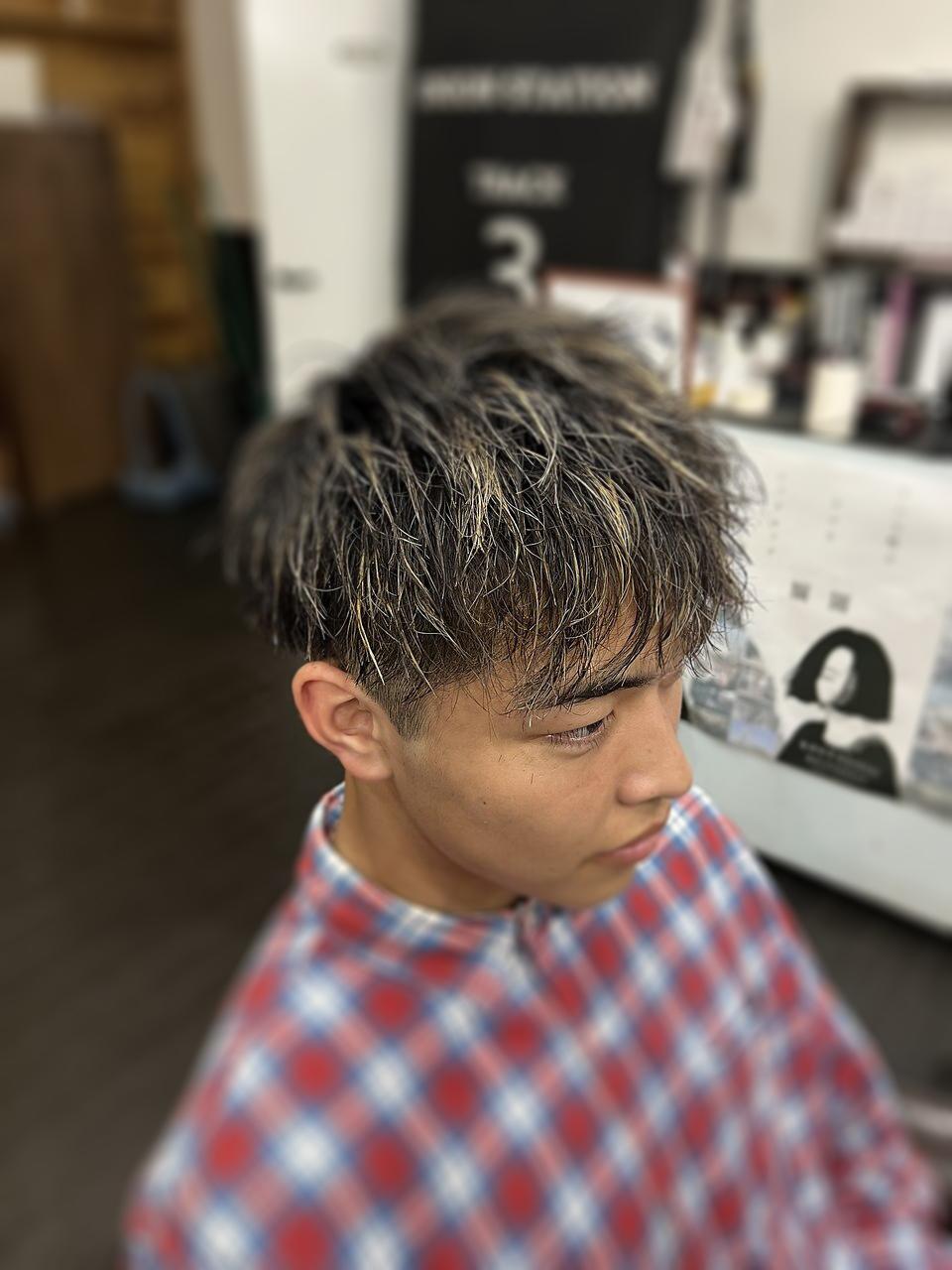 メンズカット+ハイライトカラー